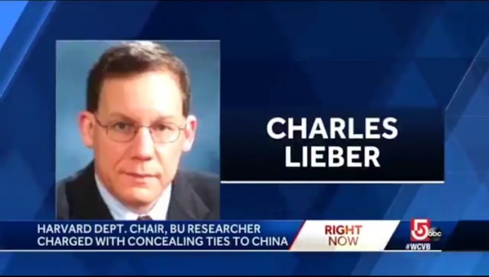 起訴されたチャールズ・リーバー教授は、中国側との関係について虚偽の申告をしたとされる。