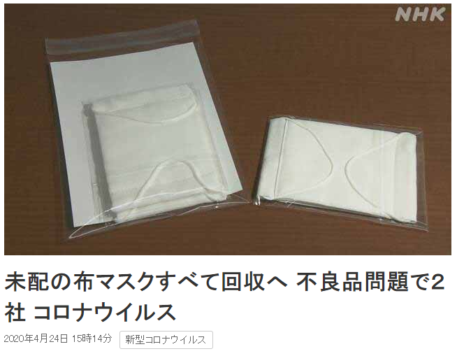 不良品マスクは配布開始数日話題になったが現在何のクレームも無し