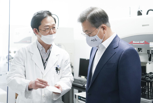 文大統領はこの日、京畿道城南市(ソンナムシ)の韓国パスツール研究所で開かれた「COVID-19治療薬・ワクチン開発産・学・研および病院合同会議」で「産・学・研・病院だけでなく政府も参加する常時協議の枠組みを作り、政府をあげた支援体系を構築せよ」として、上のように述べたとカン・ミンソク大統領府報道官が伝えた。文大統領は、政府がこれに2100億ウォン(約188億円)を投資すると発表した。