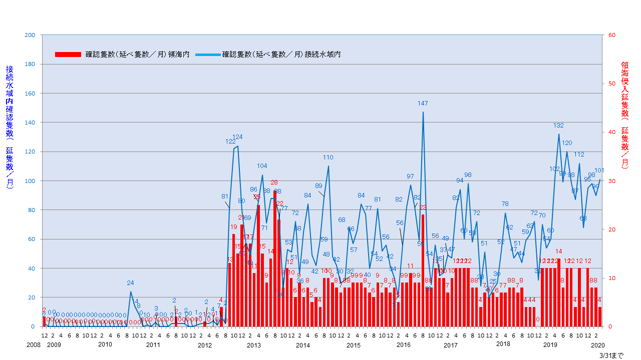 防衛省統合幕僚監部は3月以降、一定期間ごとにまとめていたスクランブルの発表を原則翌日にツイッターで公表するようになった。尖閣周辺での中国公船の航行についても、所管する海上保安庁と情報発信のあり方を協議する方針。