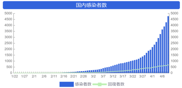 日米欧は同じような指数関数で陽性患者が増加してる