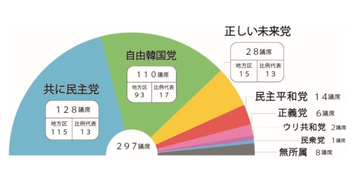 日本では3か月も前に、「自由韓国党は105議席に減らすだろう」という見通しがすでに出ている。
