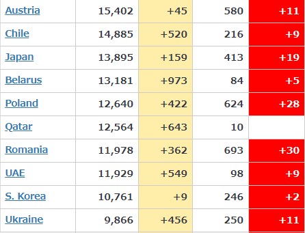 日本 768人(前日比 +12人)←クルーズ船の死亡者を除く