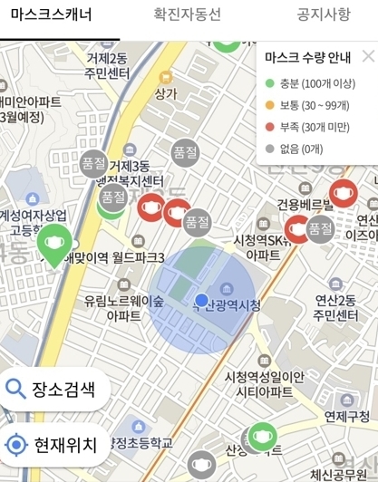 사진은 휴대전화 navi 약가게의 mask 수량을 표시하고 있다.