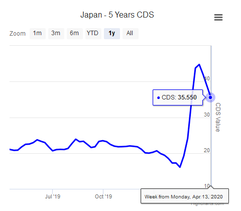 2020年4月13日、韓国・マネートゥデイによると、韓国の債務不履行リスクを示すクレジット・デフォルト・スワップ(CDS)プレミアム(保証料)が、日本やフランスを下回った。