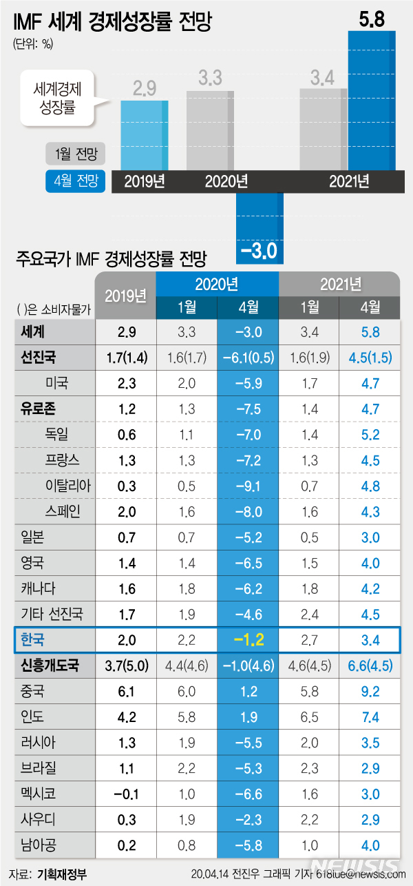 imf 올해 한국 경제성장률 -1.2% 예상 1998년이후 마이너스성장 처음