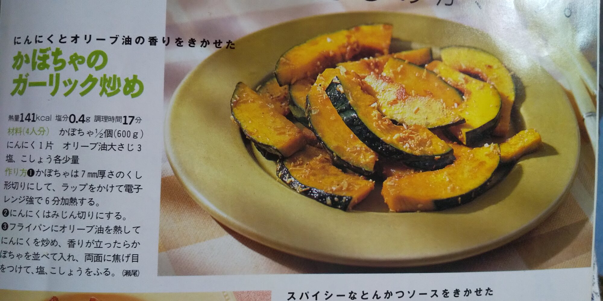 ③フライパンにオリーブ油を熱してニンニクを炒め、香りが立ったらカボチャを並べて入れ、両面に焦げ目をつけて、塩、こしょうをふって出来上がり
