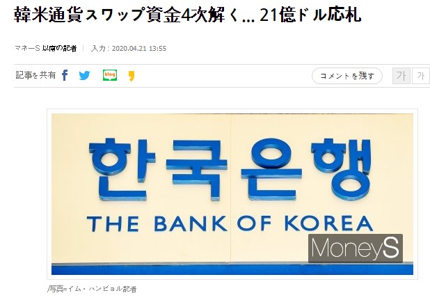 そして史上最高の外貨準備高とかあれだけアピールしてたのにまたわざわざ利子が高いのに20億ドルぽっち借りるって…もうその程度も工面出来なくなってるんだろうか?あくまで通貨スワップとしか書かない韓国報道