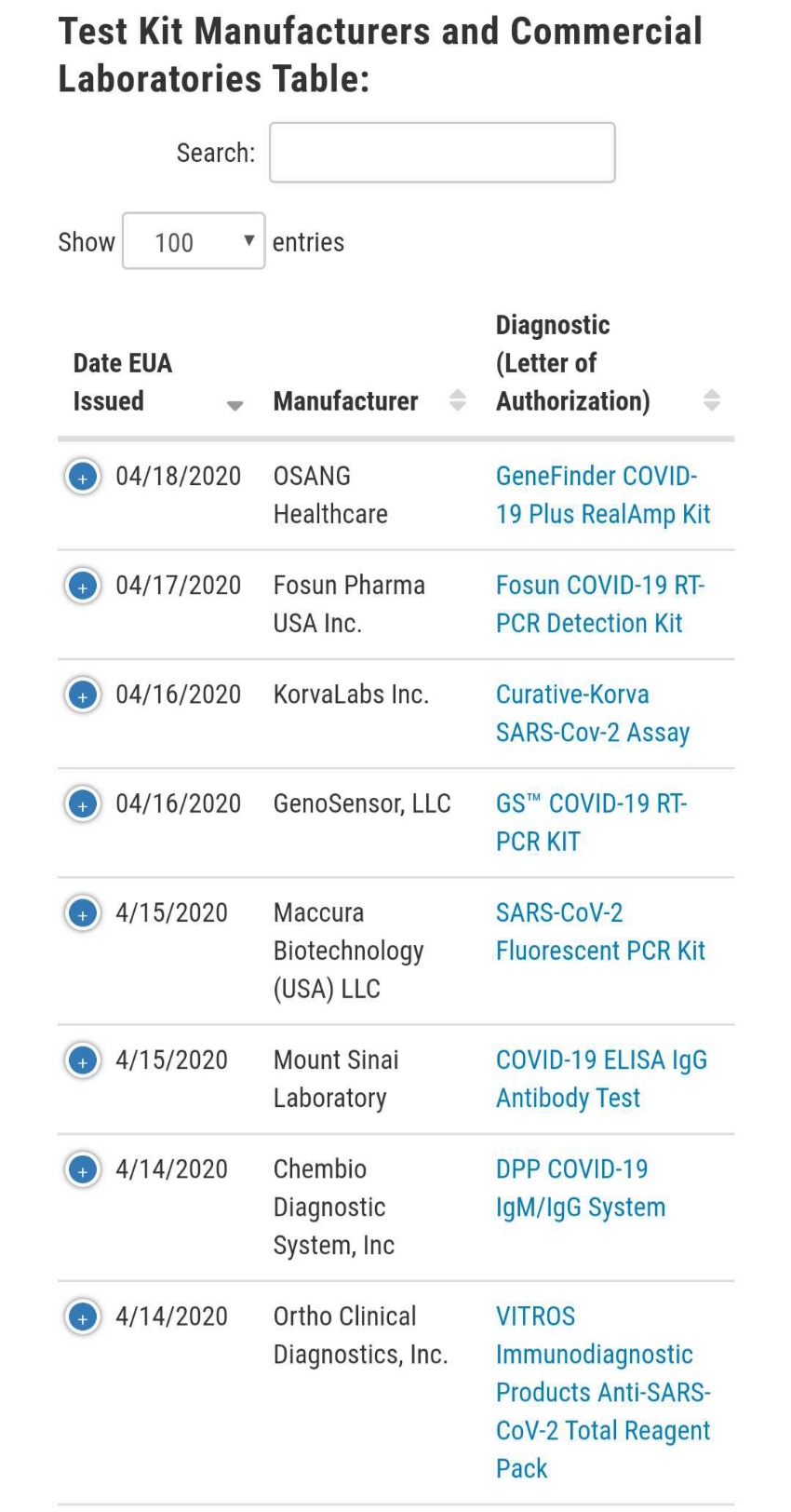 모두 fda승인받은 키트로 진단한 것은 아니다