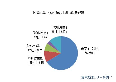 一方、次期(2021年3月期)の業績予想は、163社のうち、108社(構成比66.2%)が「未定」として開示しなかった。