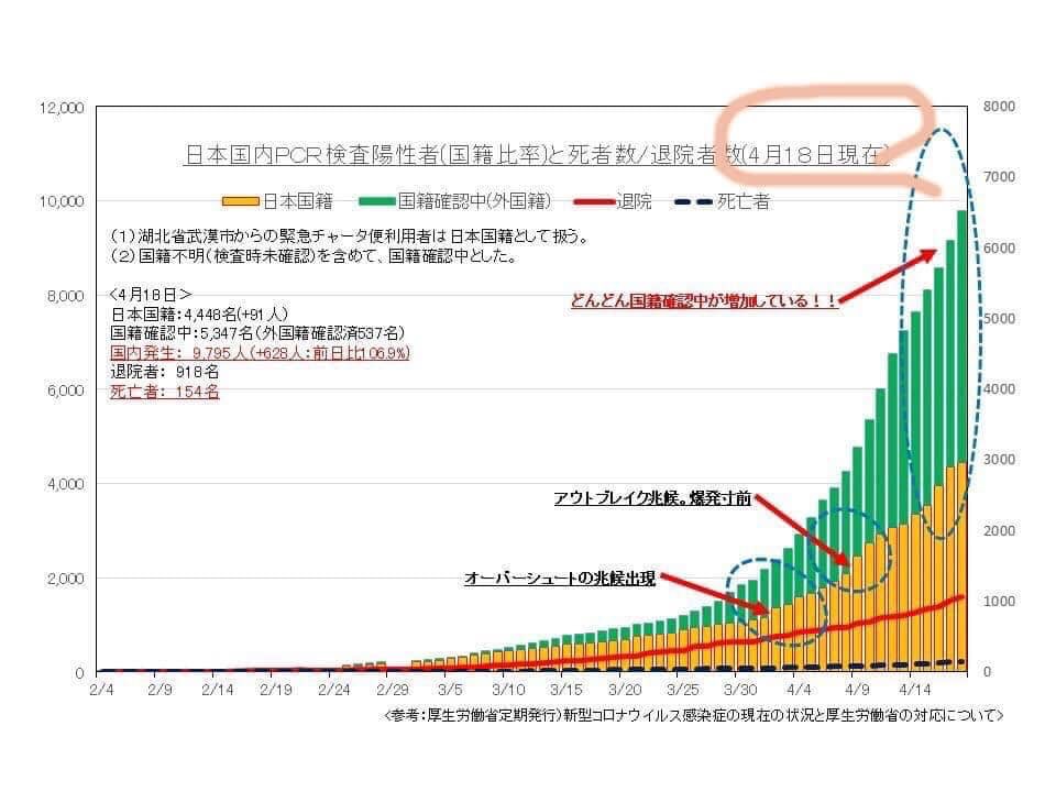 日本に在留する外国人は、在日を含めて約282万人で、日本人を含めた日本国内人口の約2.25%に過ぎないのですが、その2.25%の人達が感染者の約44%を占めているのが実情です。「日本国籍者以外」は武漢コロナに対する抵抗力が弱いのですから、重症化、死亡の中に占める「日本国籍以外」の比率は上記以上に高くなっているはずです。
