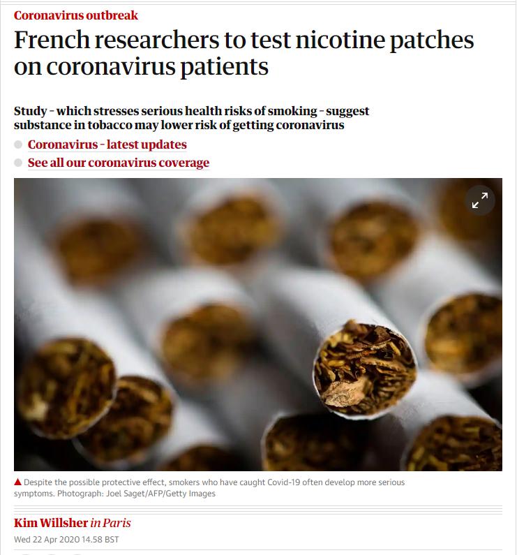 https://www.theguardian.com/world/2020/apr/22/french-study-suggests-smokers-at-lower-risk-of-getting-coronavirus