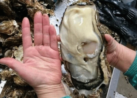 中国メディアが手のひらサイズ福島(福島)山生牡蠣の写真を報告した。