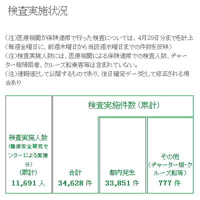 けれど、その画像の数値の出典としている東京都では、11691人は「健康安全研究センターによる実施分」だけであって、医療機関による保険適用での検査人数を含まないとしている。