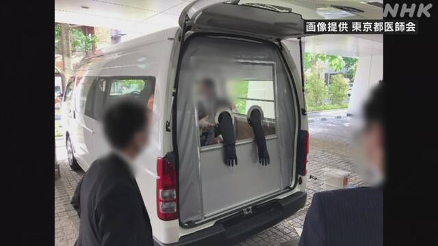 導入する専用の車両はワンボックスタイプで、屋外に駐車して後部に医師が乗り込み、手袋をつけた手だけを出して車の外にいる患者から検体を採取します。