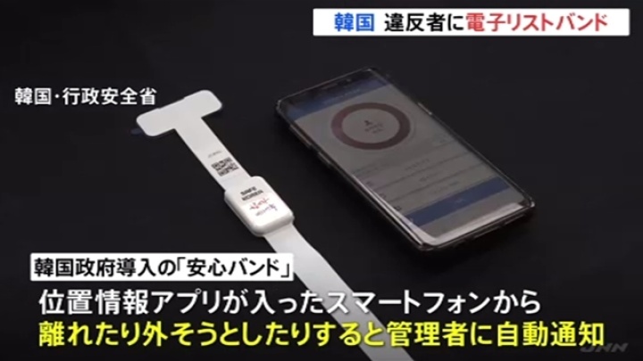 新型コロナウイルスへの感染の疑いで自宅に隔離されている人の無断外出が問題になっている韓国で、違反者の行動を把握する電子リストバンドが来週から導入されます。