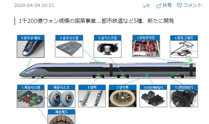 韓国の高速鉄道で核心部品10個を国産化する計画を発表