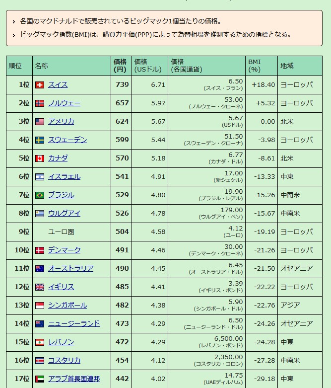 https://ecodb.net/ranking/bigmac_index.htmlルクセンブルク、スイス、マカオは租税回避地だったような気が。