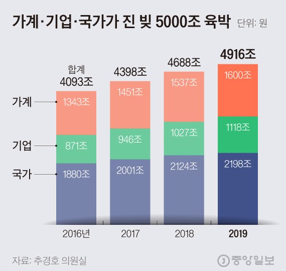 昨年、統計庁の推計人口5千170万9千人に分けて計算した国民1人当たりの国家債務は約1千409万ウォンだ。