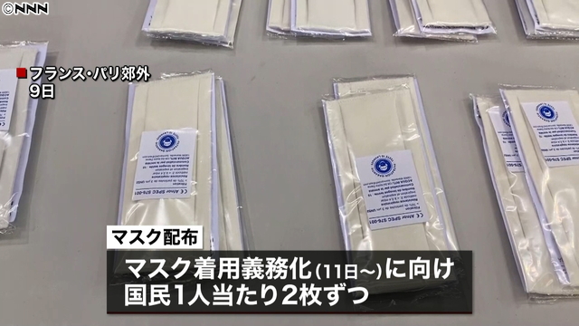 フランスでは11日から外出禁止が緩和されますが、再流行を防ぐ措置として、公共交通機関の利用時などにマスクの着用が義務付けられます。
