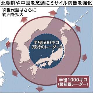 イージスアショアの監視範囲。