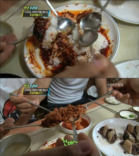 열심히 밥을 스꾸고 있던 부산싸나이들은 '스울촌놈'이라는 말을듣고 흠칫 멈추곤 이내 흡족한 표정을 지으며 애한의 눈초리로