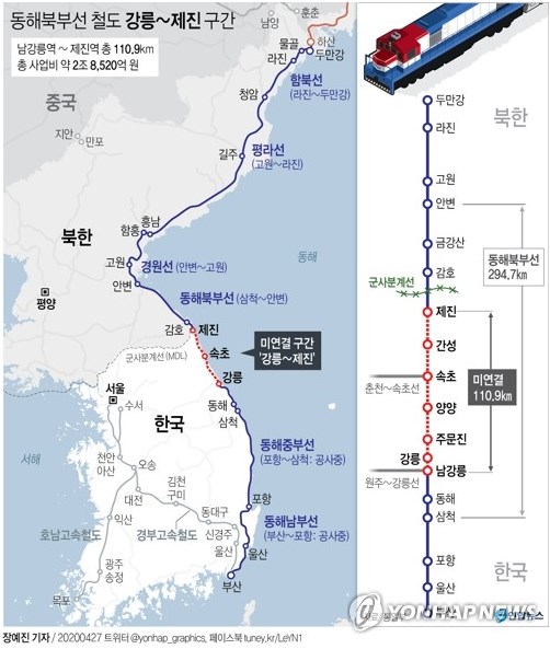 統一部と国土交通省は27日、高城猪津駅から板門店宣言2周年と東海北部線事業推進を記念するために「東海北部線の推進記念式」を行った。この日の式典で目を引いたのは、「東海北部線の推進記念乗車券」である。この日の記念式ではファンドンヨプ名誉駅長(韓国鉄道公社江原本部東海機器の操作事業所課長)が住民自治会長1人の地域の大学生1人に、ソンビョンソク韓国鉄道公社社長はグォンソンドン・李陽寿議員に列車の切符を渡した。妄想で遊ぶ韓国人