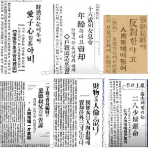 愛する彼女との結婚資金を用意するため、純真な女性を欺し人肉市場へ売り、その売った金で新婚生活を始めた男もいた。「純真な女性を欺し、人肉市場へ売喫 魔手にかかった韓女の哀話」(毎日新報1935)