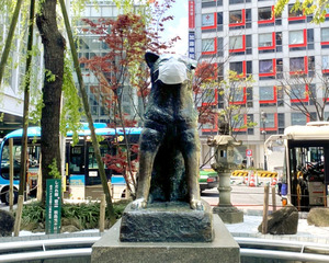4月8日。この日予定されていたハチ公の死を悼む没後85年の慰霊祭は感染拡大の影響で中止となり、関係者の献花のみが執り行われた。ただ、献花に先立ち、この日のハチ公像の口元には白いマスクが……。管理する区観光協会は「善意のマスクなのかもしれないが、ハチ公を使った私的な宣伝行為はできない」として取り外した