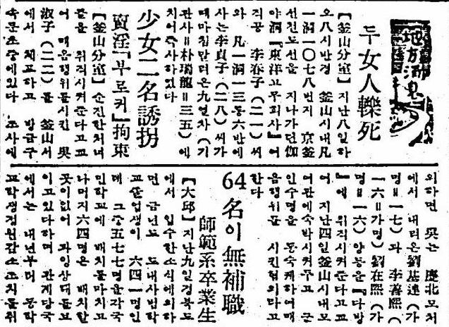 1956年4月11日 東亜日報 「少女二名誘拐 売淫「ブローカー」拘束」