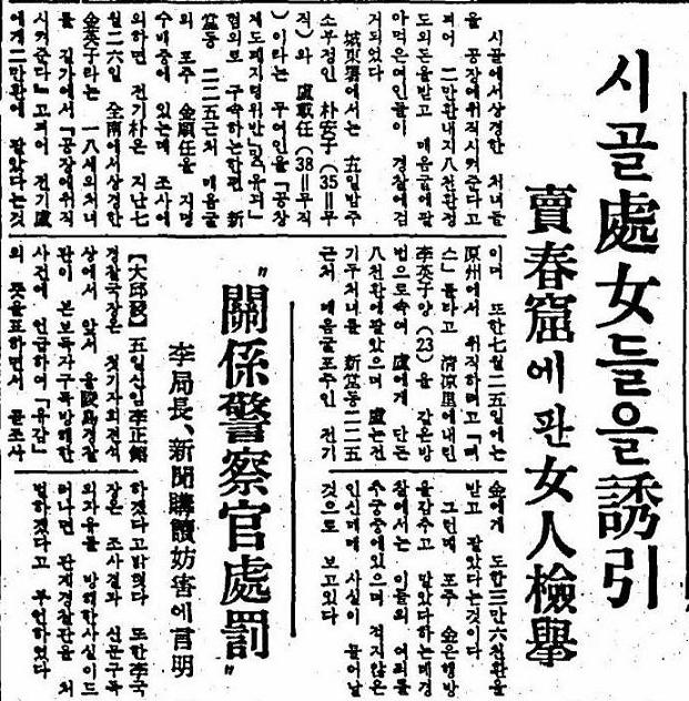 1959年8月6日 東亜日報 「田舎の処女を誘引、売春窟に売った女人を検挙」英語の慰安婦のサイトに
