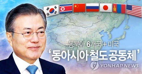 文大統領は2018年8月の光復節(日本による植民地支配からの解放記念日)に行った演説で、韓国と北朝鮮、【日本】、中国、ロシア、モンゴルの北東アジア6カ国と米国でつくる東アジア鉄道共同体を提唱した。