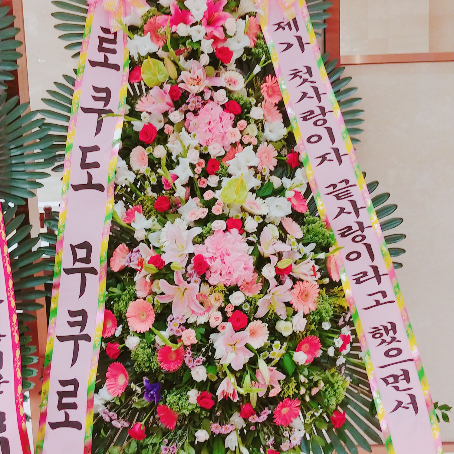 결혼식의 화환에 쓰여진 문구. 로쿠도 무쿠로는 "가정교사 히트맨 Reborn!"의 인기 캐릭터였습니다.