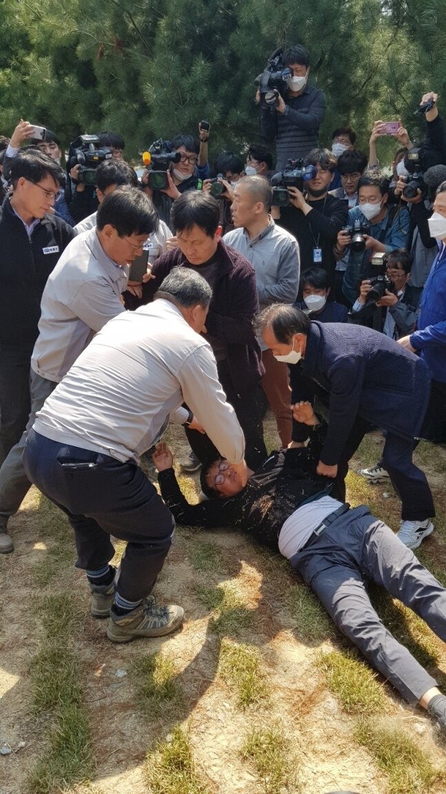 イ氏を追いかけながら泣き叫んだ。「遺族がご飯も食べられず、3時間待ったが、何か一言もしていけ」、