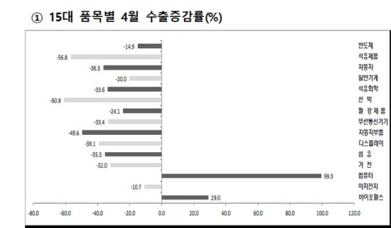 先月の輸出は大(對)米国(-13.5%)、中国(-17.9%)、欧州(-12.8%)次々急減した。主要輸出品目もの種類を選ばず二桁減少した。韓国の代表成長食べ物である半導体は、14.9%減少しており、船舶(-60.9%)、石油製品(-56.8%)、自動車部品(-49.6%)、ディスプレイ(-39.1%)、自動車(-36.3%)、石油化学(-33.6%)、鉄鋼(-24.1%)、一般機械(-20.0%)なども大幅に減少した。操業日数の減少と年間最高水準を撮った昨年の輸出の反動も負担として作用した。
