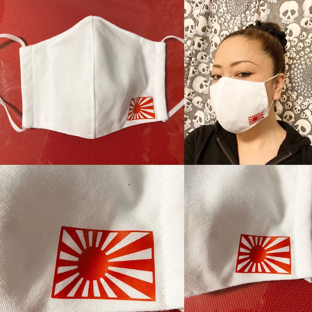 親日で日本国旗がデザインされているマスクを使ってる様にも見えなくは無いけど、ビミョー。