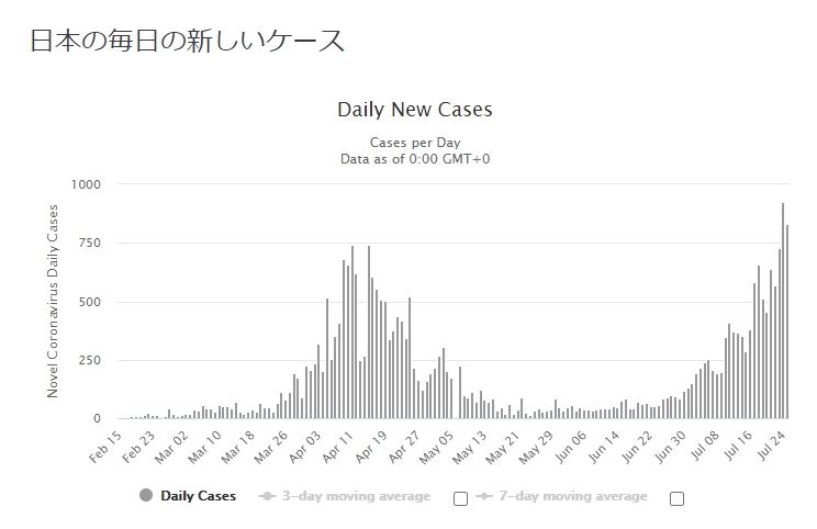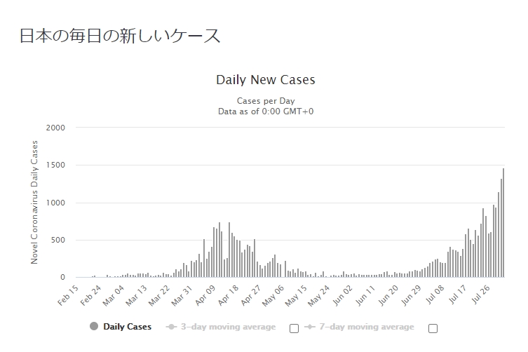 日本の感染者数の増加は量も大きいが今までにないほどの勢いがある。