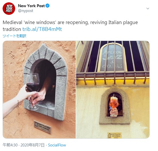 https://www.bbc.com/worklife/article/20200803-south-korea-contact-free-untact-society-after-coronavirusイタリアにて中世の「ワインの窓」が約400年ぶりに再開