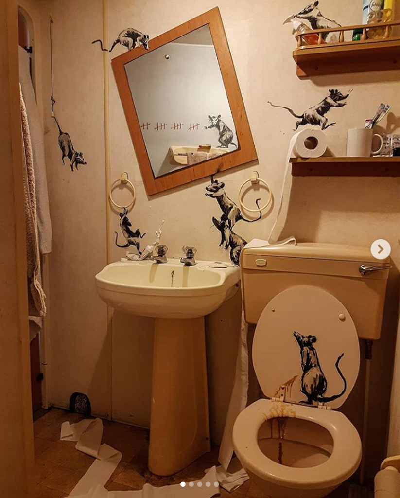 バンクシーは前作でも在宅勤務を題材としており、新型コロナ関連の作品が相次いでいる。