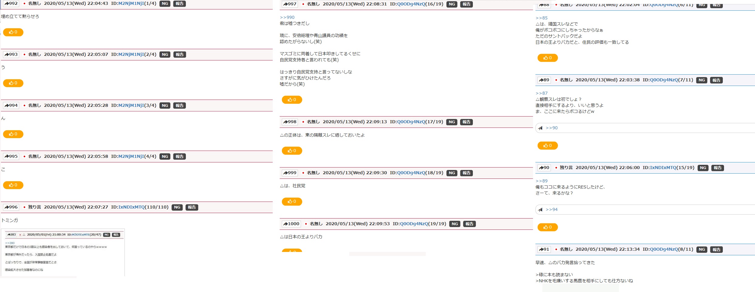 △は、靖国スレなどで