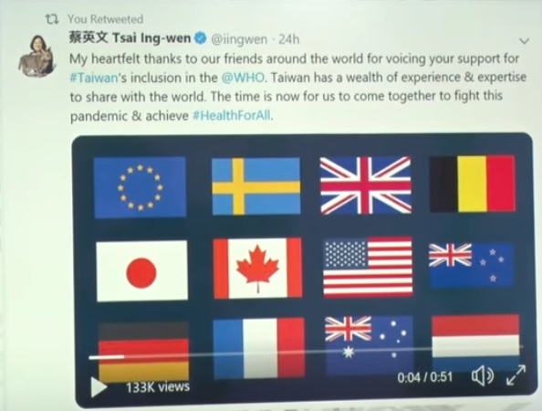 台湾 WHO加入問題で南朝鮮に感謝せず 「NO Taiwan」