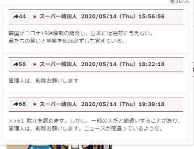 本件が悔しかった朝鮮人のスレッドは削除されてるようだね。5月末期限の最後通告と勇ましかったが。