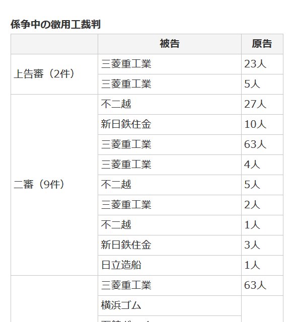 注意:画像のリストは2018/10/30時点、現在、最上部の3つは結審(大法院=最高裁判所)してる