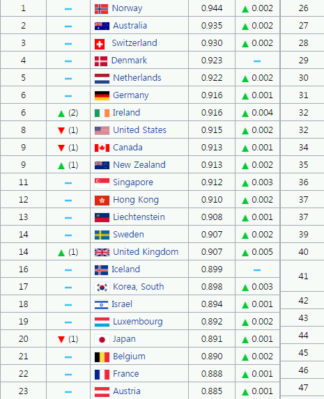 HDI(선진국지수) 순위