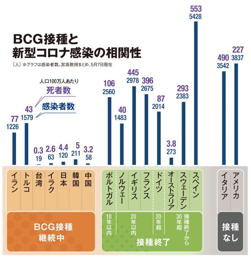BCG有無でコロナ死亡率「1800倍差」の衝撃 日本や台湾で死者少ない「非常に強い相関」
