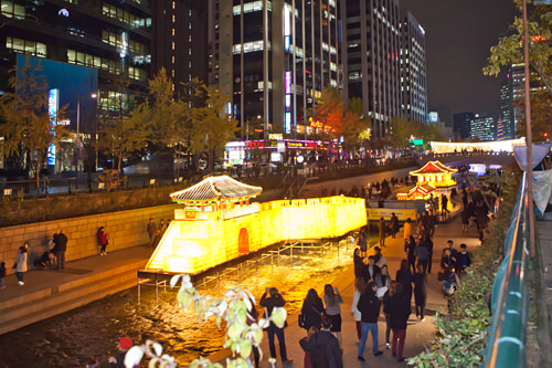 2009年からソウル光化門近くの人工の川「清渓川(チョンゲチョン)」で、ランタンフェスティバルが11月に行われているようです。一昨年、「1人の農民が警察の放水で・・・」というデモがあった時、まさにその当日、この祭りを見てきました。