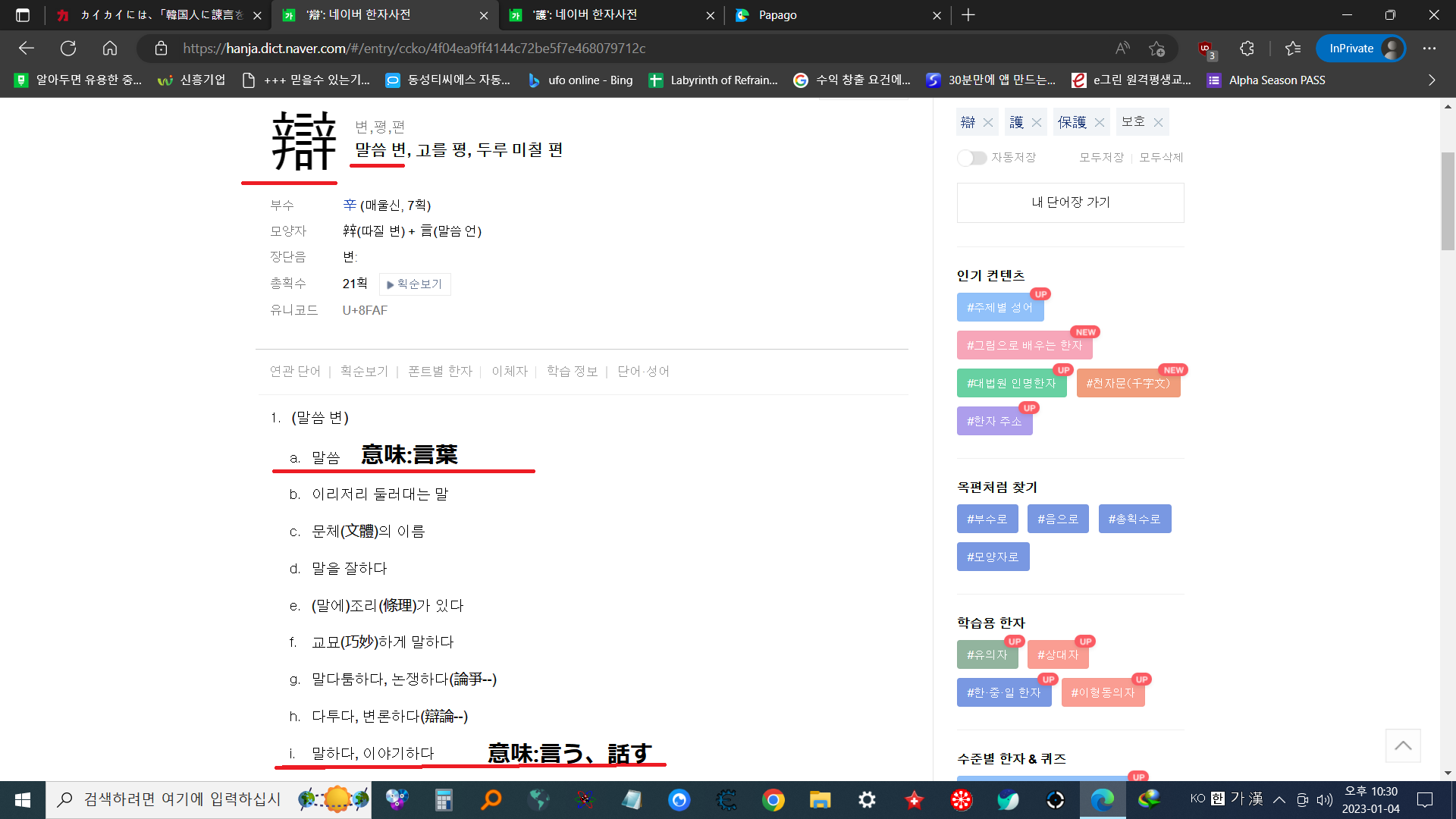 1. 辯/弁(ベン) :말씀 변