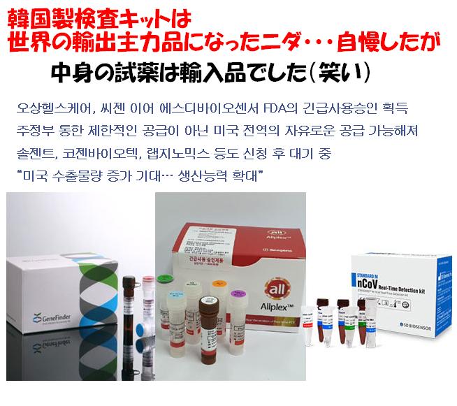 増加した。そして韓国はロシュ社の検査試薬を詰めて韓国製検査キットとして海外に