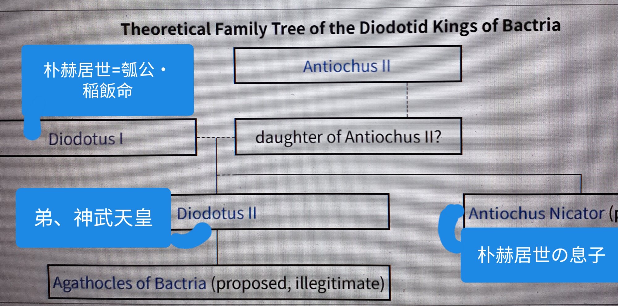 アレクサンダー大王(スメラミコト)➡バクトリア王、ディオドトス1世(朴赫居世)昆邪王