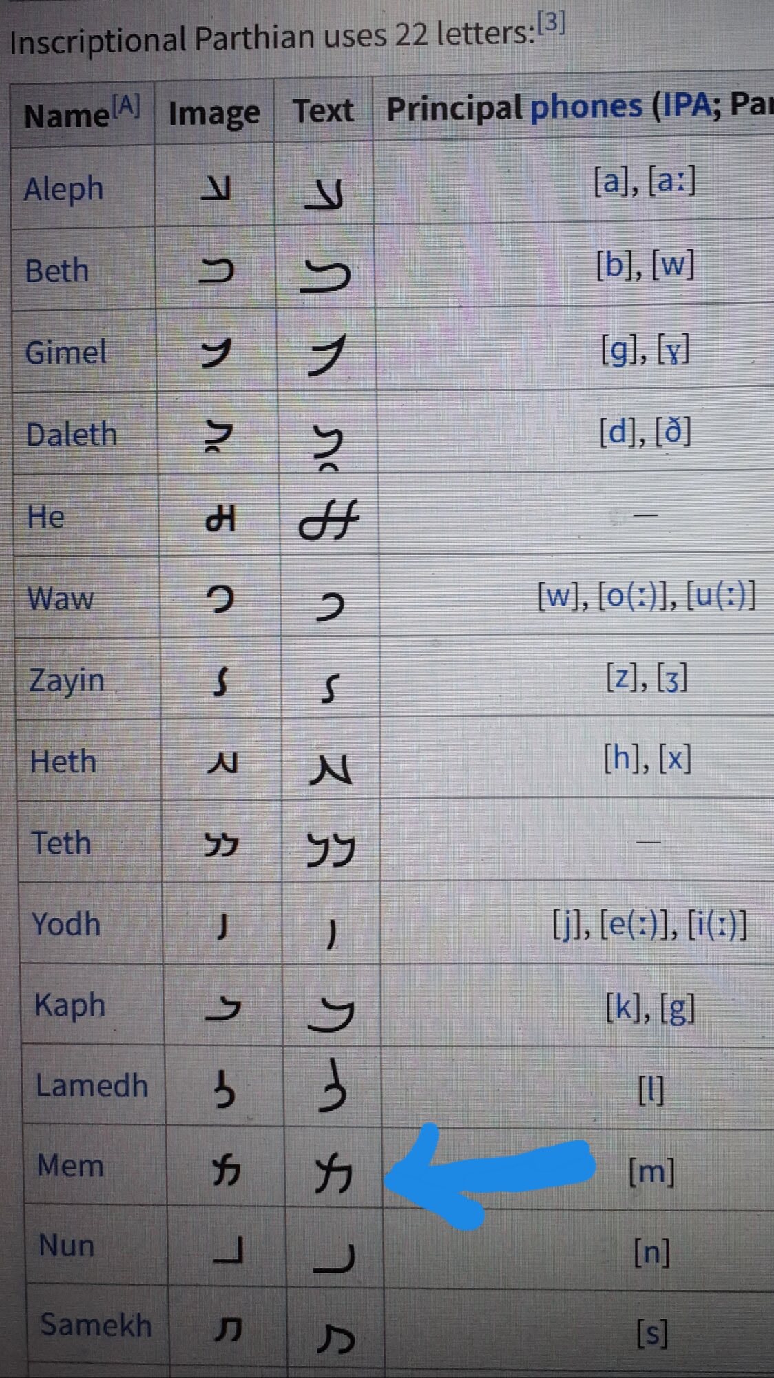 <パルティア文字> ( 𐭌 ) この文字は、古代の韓中日の最も多く見られる重要な文字wwwwww